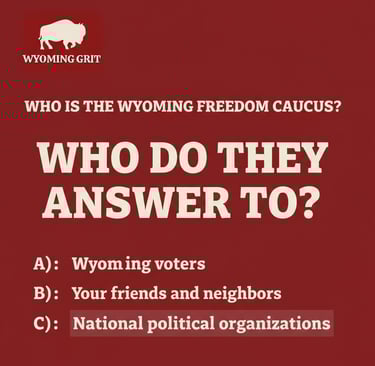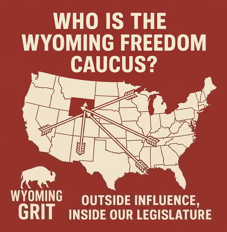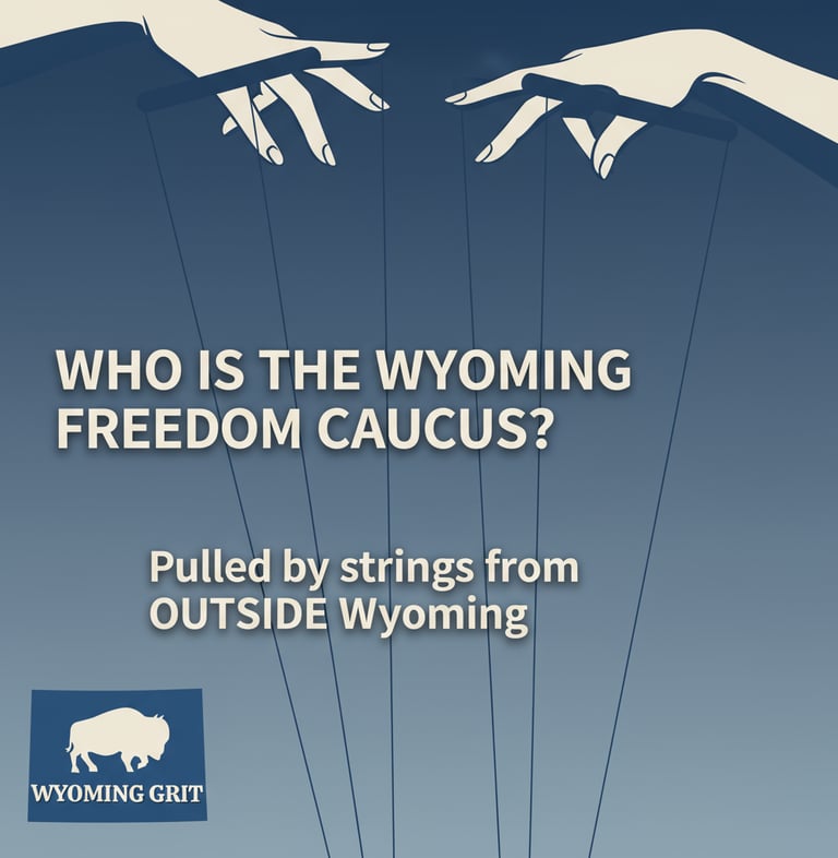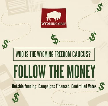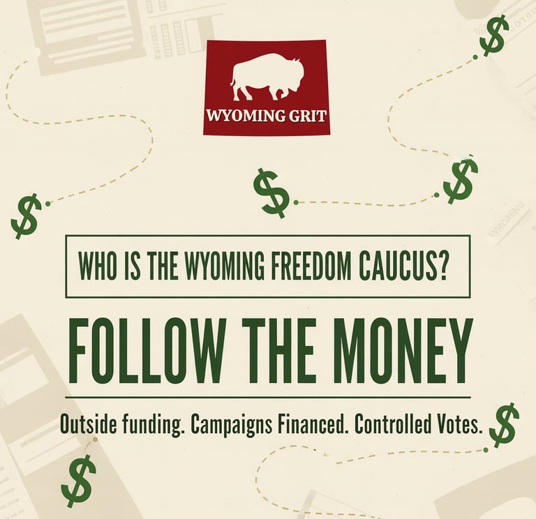 And the reward for Freedom Caucus legislators? Sweeten the pot with campaign cash. Loyal foot soldiers who toe the line can expect up to $30,000 funneled into their 2026 races, courtesy of the very outsiders who are calling the shots. This isn't Wyoming grassroots grit; it's an orchestrated takeover by outsiders.